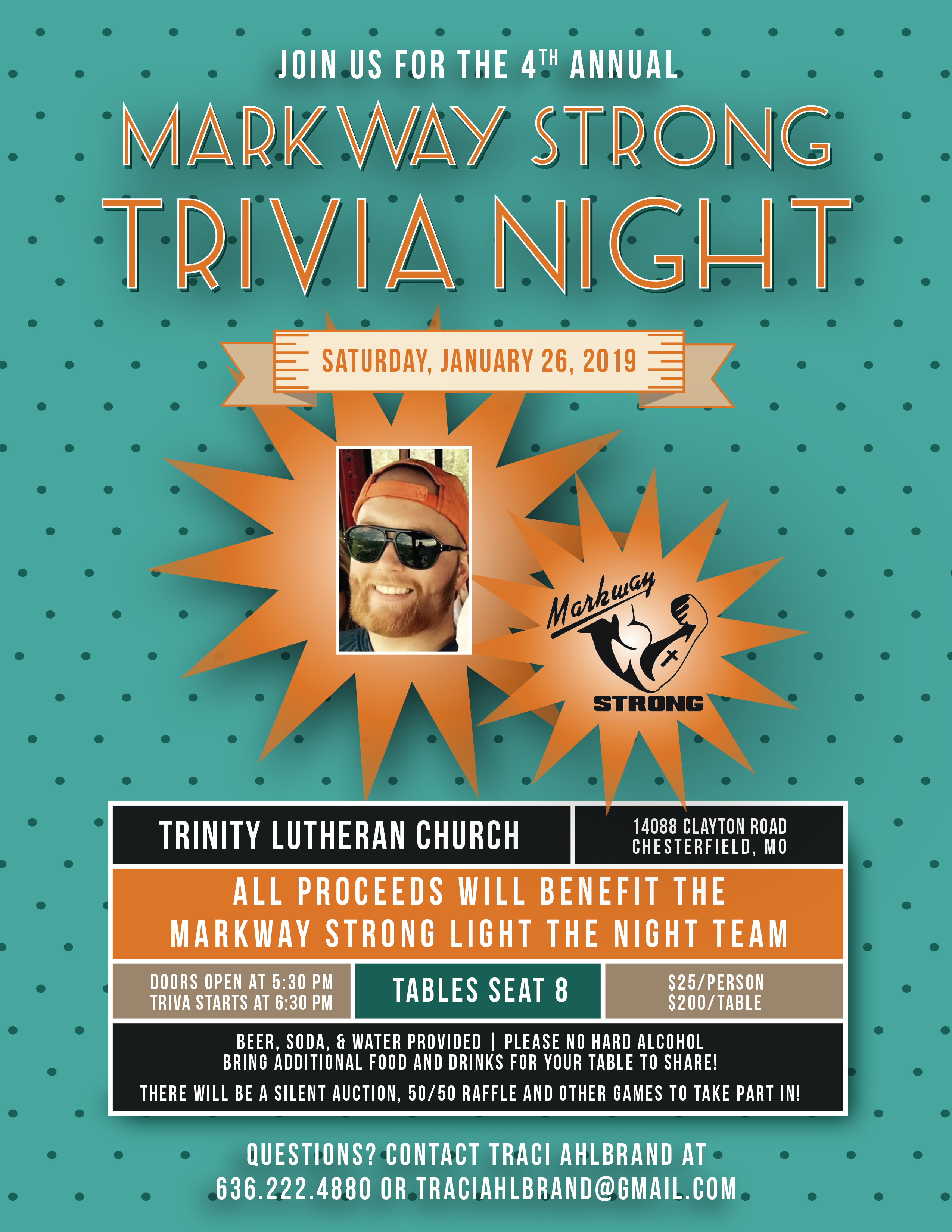 Date and Time Sat, 01/26/2019 - 17:30 Location St. Louis, MO United States Information Page URL https://events.lls.org/pages/gat/MarkwayStrongTrivia2019
