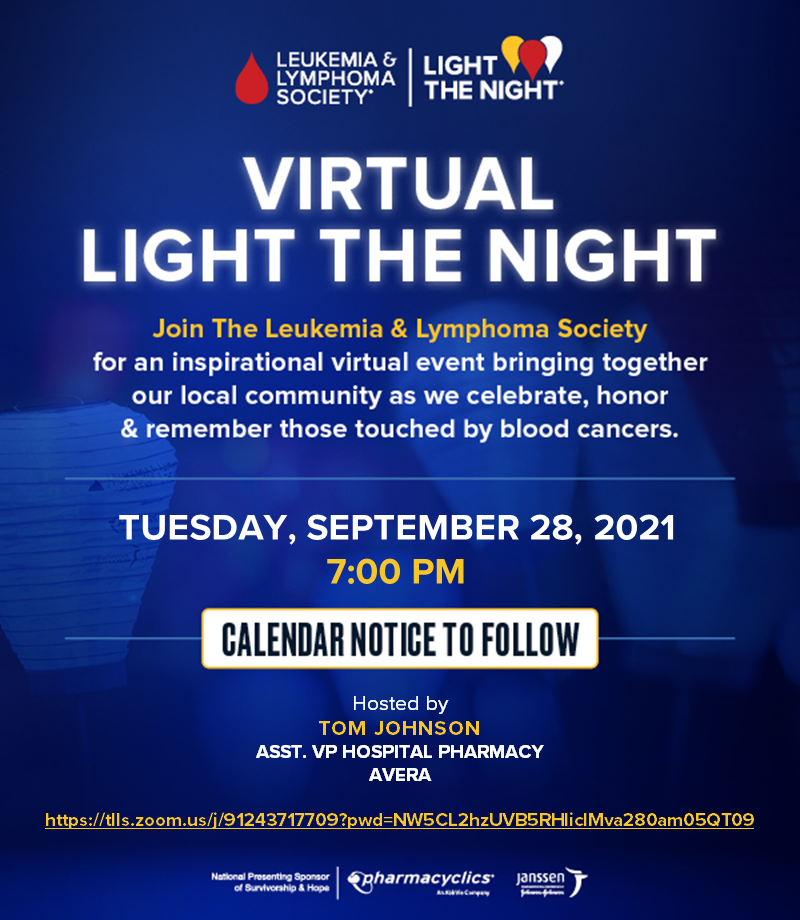 We strongly advise patients, regardless of their vaccination status, to participate in our virtual event rather than attending in person. We also advise individuals who are not fully vaccinated against COVID-19, including children under the age of 12, to participate virtually. All registered 2021 Light The Night participants, with a valid email address, will receive an email the week of the event with details and links for joining our Virtual Experience.